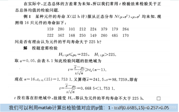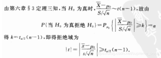 定义原理:总体服从正态分布,且该正态分布的均值未知,需要我们检验,且总体方差未知
