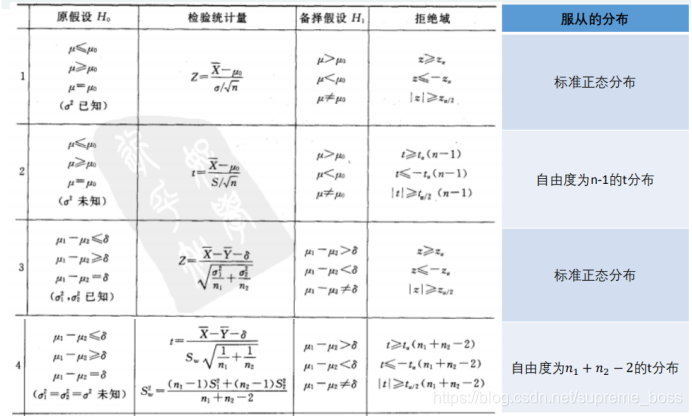 注意:步骤二中构造的统计量分布,一般指标准正态分布,t分布,卡方分布,F分布!!!
