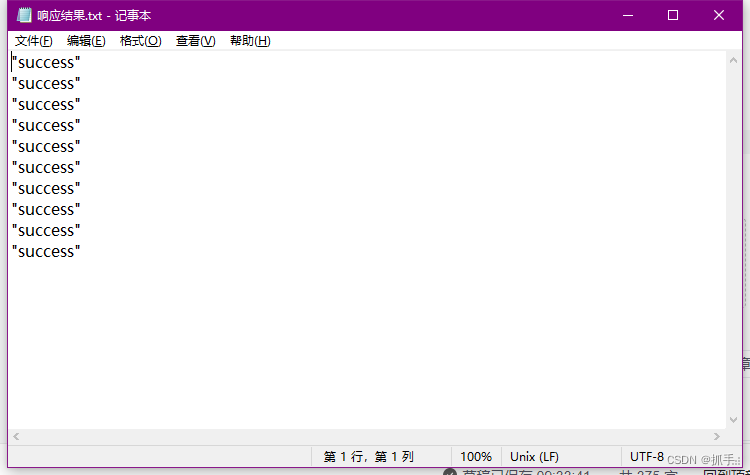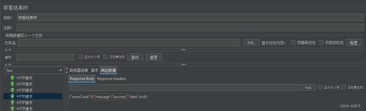 目标:将响应数据 {"errorCode":0,"message":"success","data":null} 中的message字段的值全部保存到一个文件中。