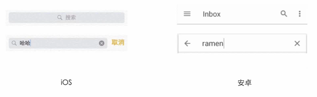 - 页眉-导航栏:用于实现在应用不同信息层级结构间的导航,有时候也可用于管理当前屏幕内容。