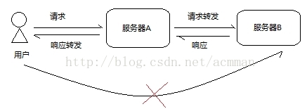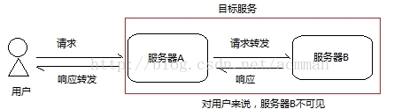 整个过程用户是知道自己访问的服务来源,服务器A仅仅起到中间桥梁的作用。