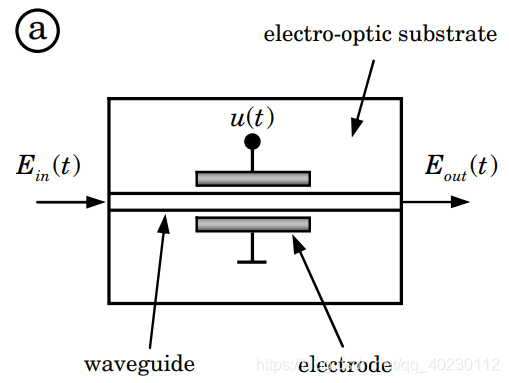 相位调制器(Phase Modulator(PM))的基本结构如下图所示,相位调制器的有效折射率与外部加载的电压成线性变化。