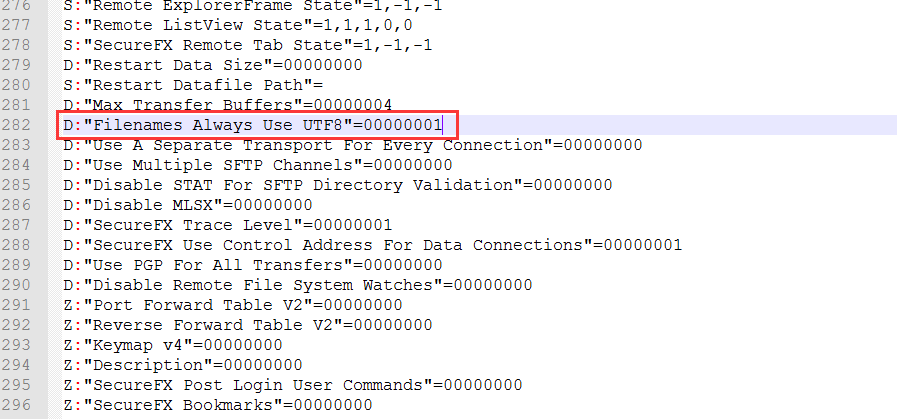 5、查找:Filenames Always Use UTF8;Filenames Always Use UTF8后面的值修改为:00000001,保存退出