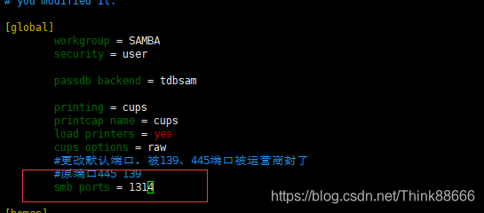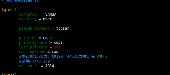 1、更改samba配置文件,修改端口为1314,重启samba服务