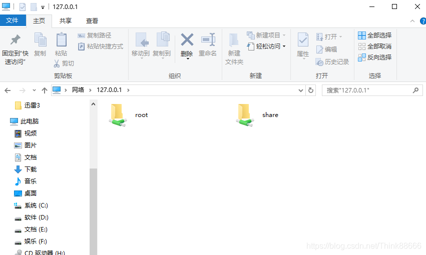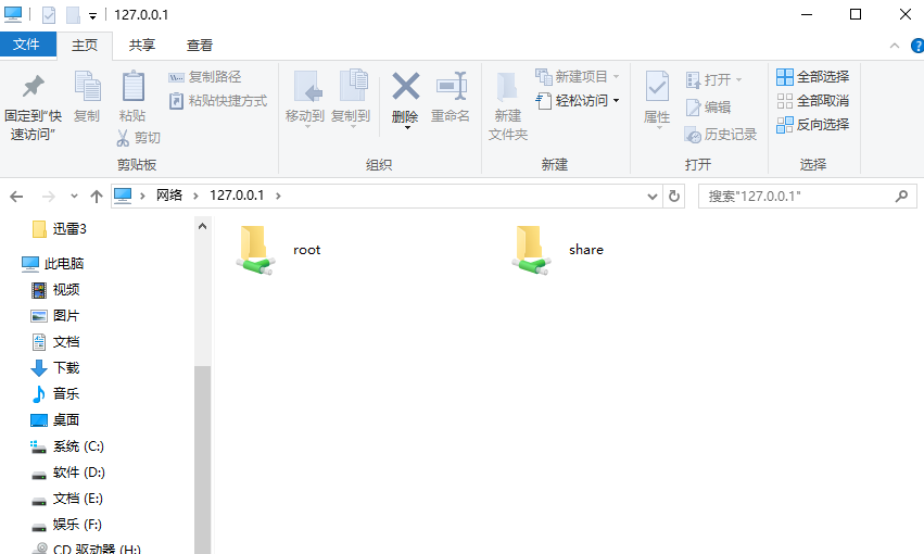 资源管理器中输入\\127.0.0.1即可访问共享目录