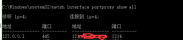 netsh interface portproxy add v4tov4 listenport=445 listenaddress=127.0.0.1 connectport=1314 connectaddress=服务器ip