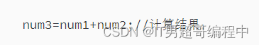 int main(){int num1;int num2;int num3;//声明并定义变量;printf("请输入第一个加数:\n");//提示用户输入第一个操作数;scanf("%d",&num1);//scanf函数扫描第一个数;printf("请输入第二个加数:\n");//提示用户输入第二个操作数;scanf("%d",&num2);//scanf函数扫描第二个数;//扫描用户输入的操作数要定义变量,并且要取变量地址;num3=num1+num2;//计算结果;printf("IT男超哥很帅!!!\n");printf("IT男超哥yyds!!!\n");//printf函数的基本格式("输出的结果\n,输出格式"),不要忘记分号;printf("结果:%d+%d=%d\n",num1,num2,num3);//占位符:%d代表在输出的地方,占了一个坑,输出结果根据逗号后面的变量名的变量值输出;system("pause"); //提示系统出现程序黑框,运行程序;return 0; //return和int成对出现,无int就没有return;}