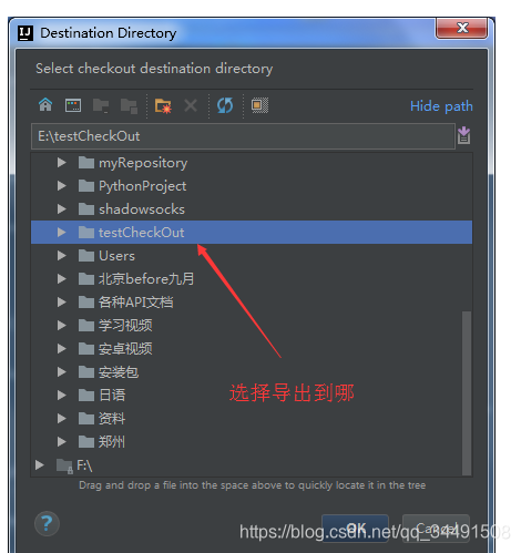 选择导出的目的地,一般就是新建个文件夹用来存放所有的工作相关的项目。我这是测试,就随意点啦。