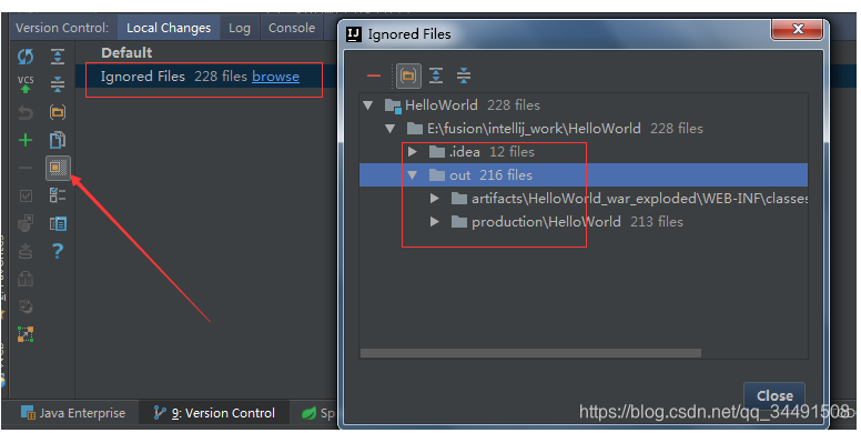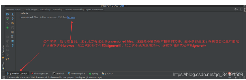 可以看到都是在.dea文件夹下的一些文件,这些文件是不需要版本控制的,也不需要显示在这local changes一栏的。所以,你选中这些多余的文件,然后ignore掉就可以啦。