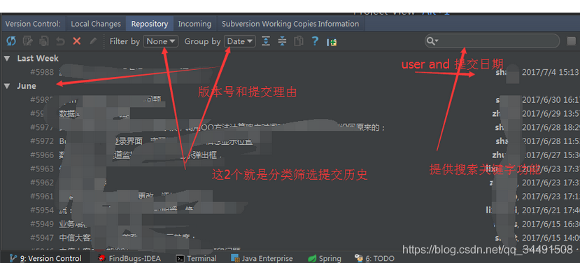 第三个按钮:Compare with the Same Repository Version 当前文件与服务器上该文件通版本的内容进行比较。如果当前编辑的文件没有修改,则是灰色不可点击。