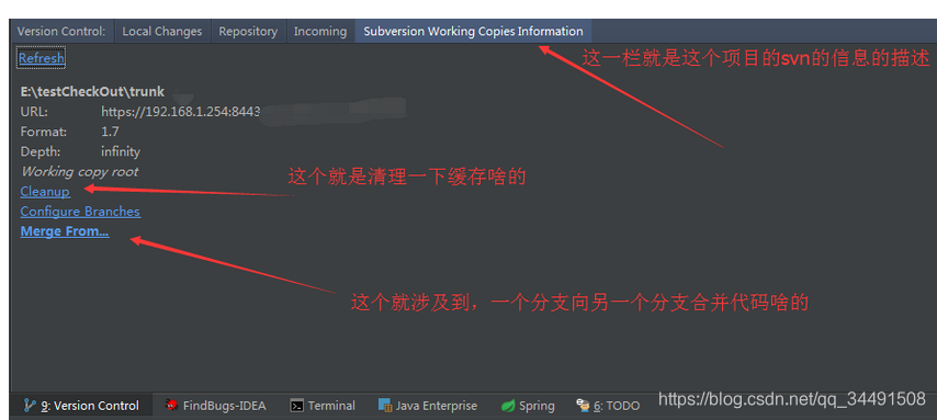 要是,你一本正经的在完成你的任务,但是你的同事却凑巧也修改了你正在修改的文件,而且他还先你一步提交了,废话,要不然,解决代码冲突的事情,就是他来干啦。这个情况下,就得考虑合并了,也就是对应上图的merge按钮啦。