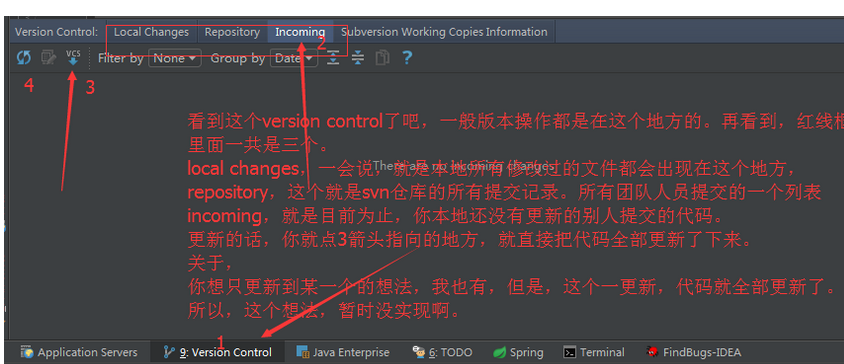 上面的五个按钮,说实话,1,2是不常用的,因为在这个地方提交更新和下载更新,给你的感觉有点不清不楚的感觉。所以,在这一般不使用这2个按钮。