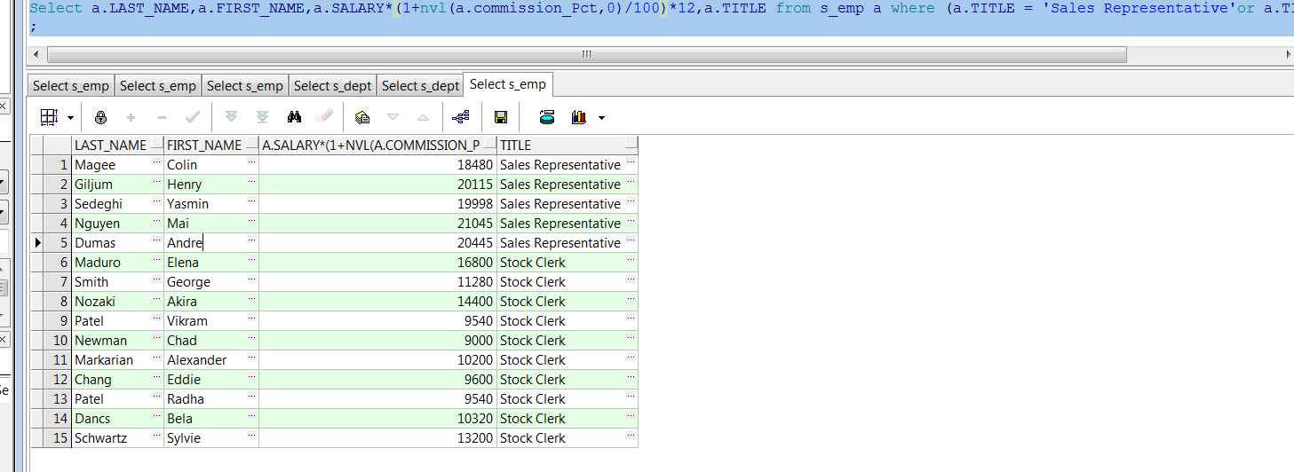 Select LAST_NAME,FIRST_NAME,SALARY,COMMISSION_PCT from s_emp order by SALARY DESC, COMMISSION_PCT asc;