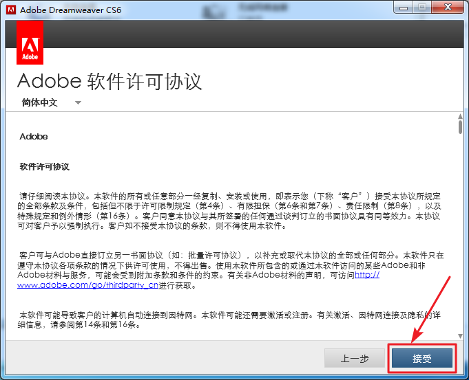 稍后出现的界面中会出现安装路径,系统默认的路径是: C:\Program Files (x86)\Adobe