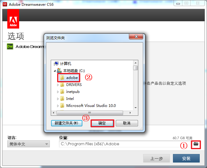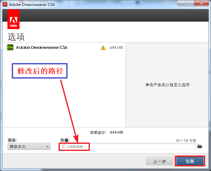 而个人的喜好是建在C盘的根目录下,于是我要更改路径为: C:\adobe