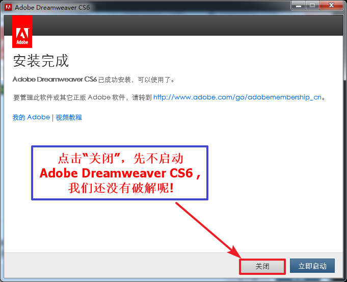 当安装成功后,请不要“立刻启动”,请点击“关闭”进入下一个界面。