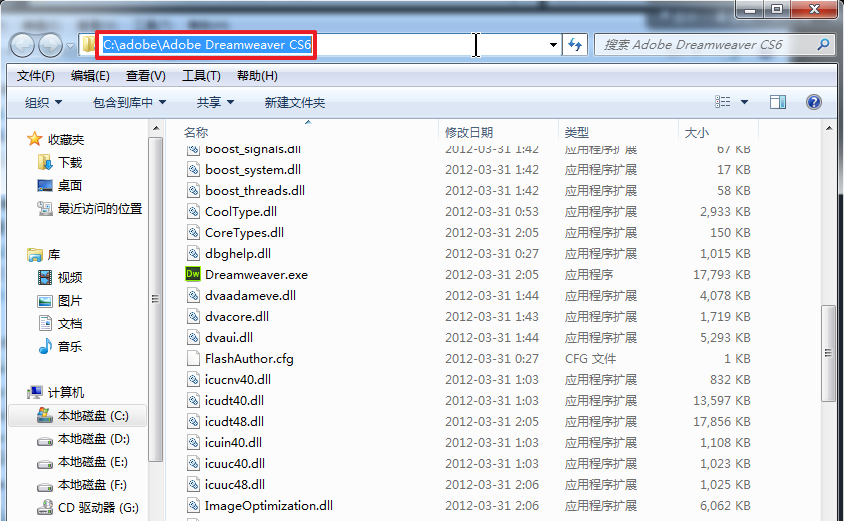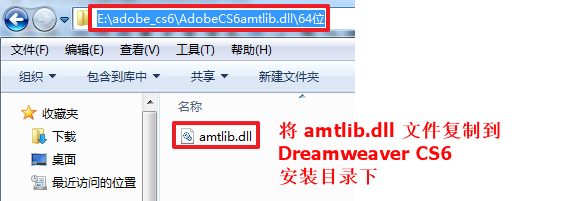 PS: 本人将下载后的 Dreamweaver_12_LS3.exe 和AdobeCS6amtlib.dll.rar 放置在本人电脑的E盘下的E:\adobe_cs6\ 目录下
