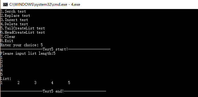 LNode *Test5(void); //测试"TailCreateList"函数