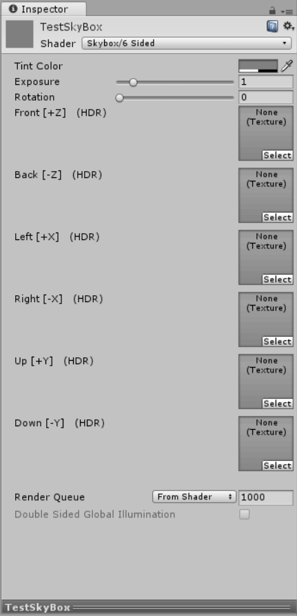 SkyBox/6 Sided,将六张贴图放到对应位置。