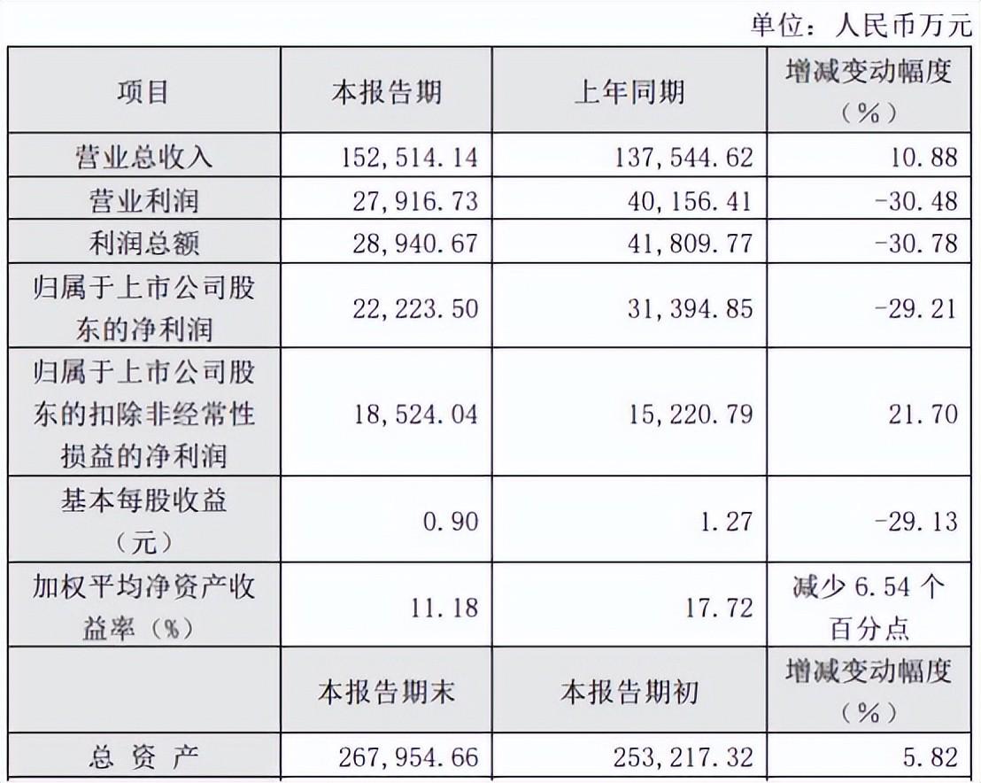报告期内,公司实现营收15.25亿元,同比增长10.88%;实现归属于上市公司股东净利润2.22亿元,同比减少29.21%。