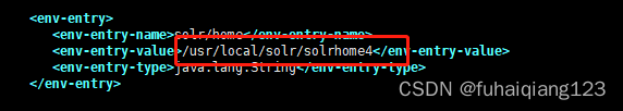 4、修改tomcat中solr项目的web.xml中<env-entity-value>为对应的solrhome的路径,4个tomcat分别对应4个solrhome路径。比如tomcat4对应的solrhome的路径就是solrhome4的路径