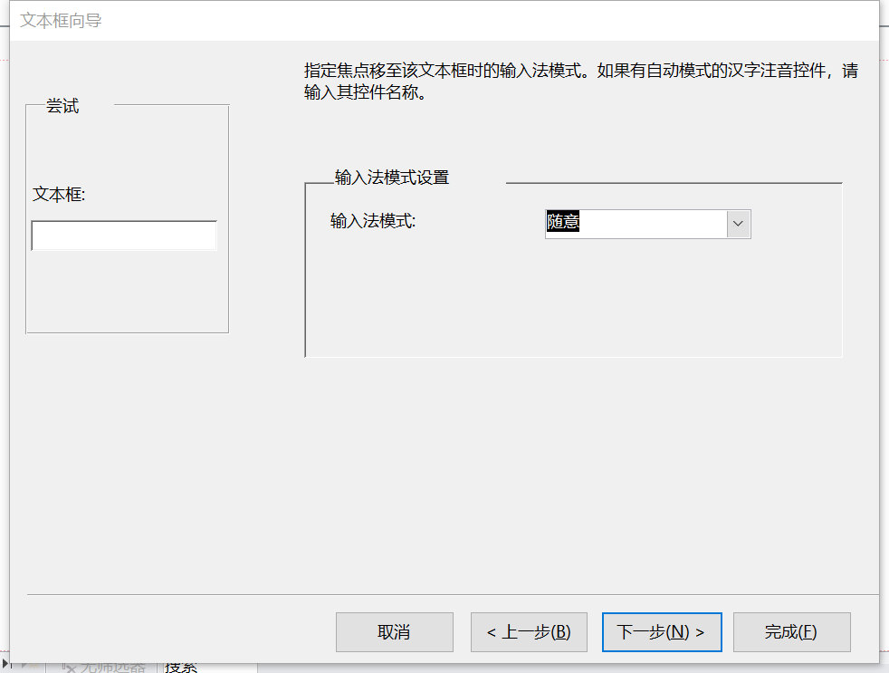 1.3. 先选中文本框,然后点一下窗体内的虚线框内的任意位置,然后出现“文本框向导。第一步是设置文本框内输入文字时的字体、大小等格式。(如果调大字体,再后记的调整中,要加高输入框才能完全显示,不会自动适应, 这一点要注意!!)