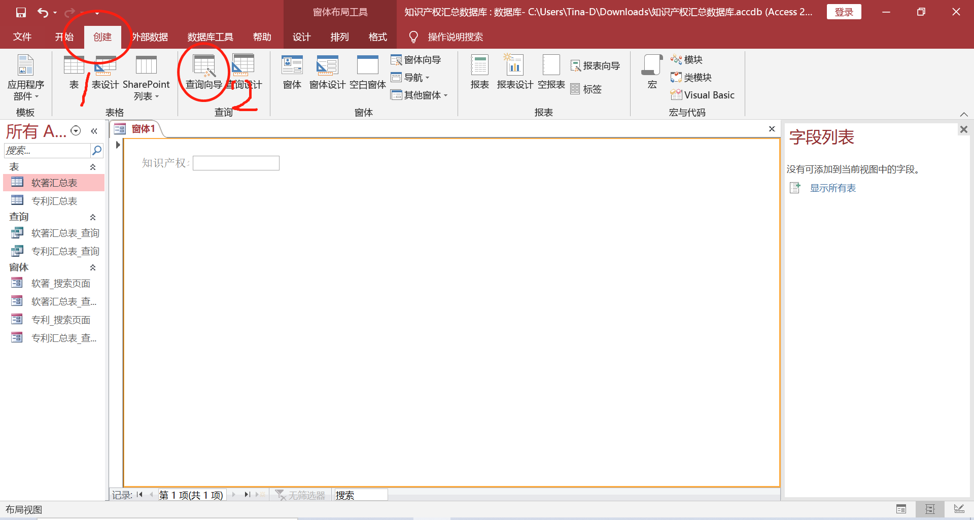 2.1 类似上一步的操作。不过,我们选择以查询向导的方式来生成 ”查询“ 这种Access对象。