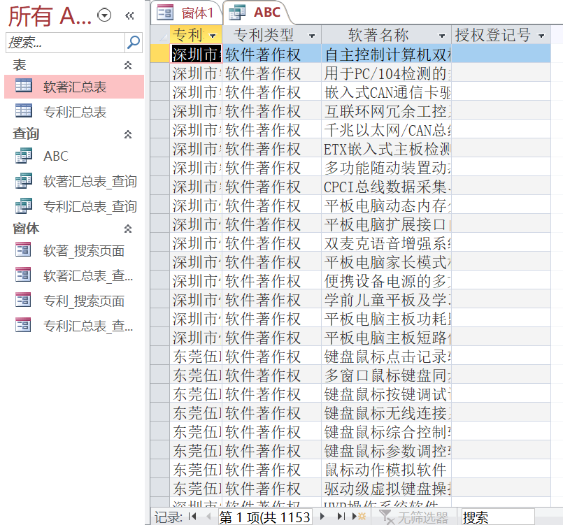 最终建成的 ”查询“ 对象 ABC,以及导航栏右侧,所显示的,该查询所形成的结果。我们后面第三步添加的搜索按钮,输入要查找的关键字后,显示的内容格式将和ABC所显示的内容格式相同。 也就是说,搜索,将会对”查询“对象 ABC中所显示的内容进行搜索。