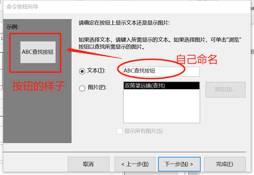 3.2 为按钮设置动作属性,即点击按钮,开始搜索你所输入的字段中内容的关键字