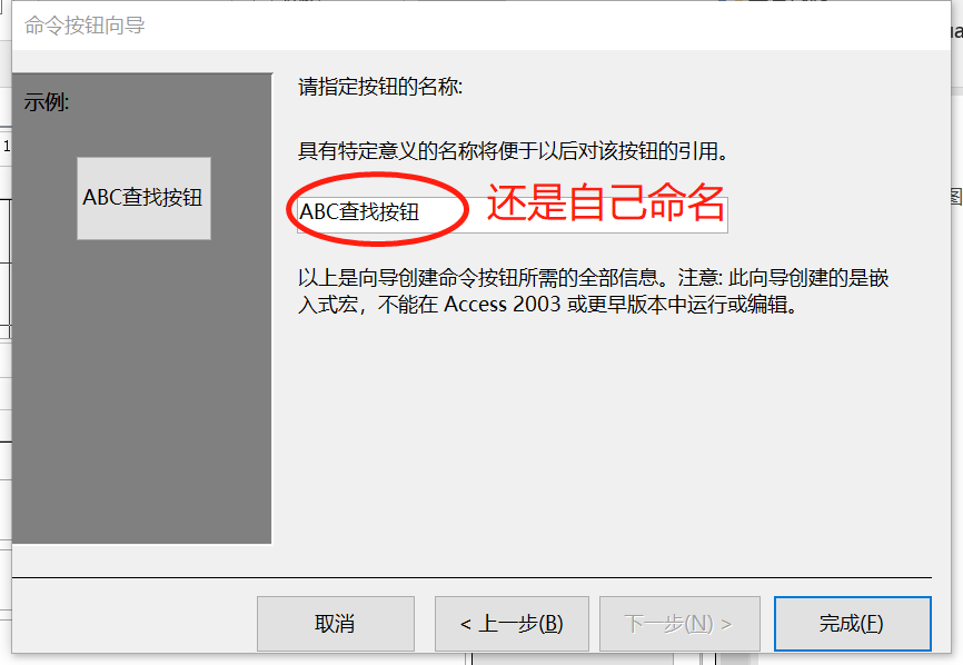 2.5 下一步之后,到了为”查询“进行命名的步骤。 也就是左侧导航栏中,查询 下面所显示的”查询“ 对象的名称。 我们这里直接用ABC作为示例