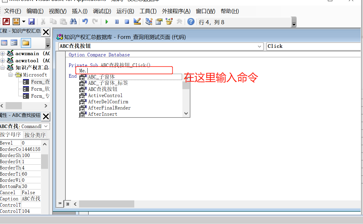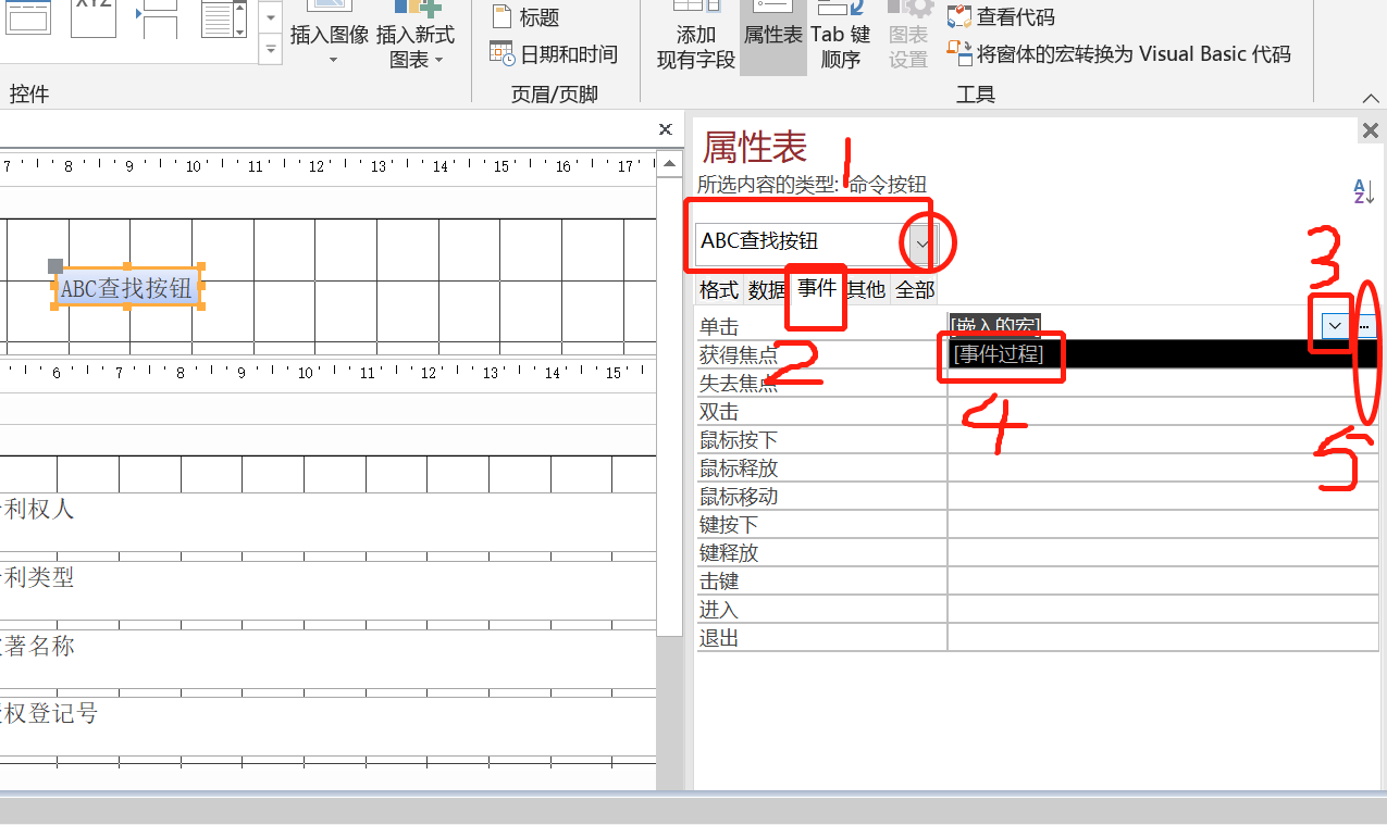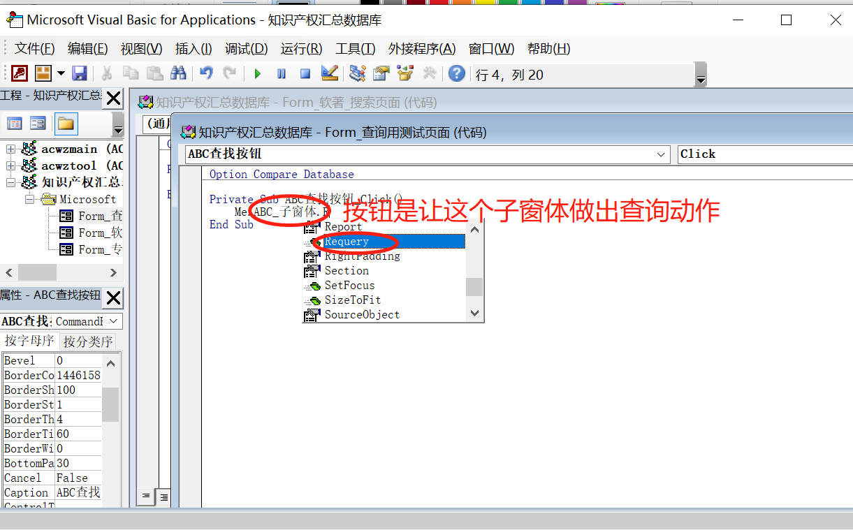 3. 在搜索窗体中添加 查询按钮,并设置查找函数,实现查找功能