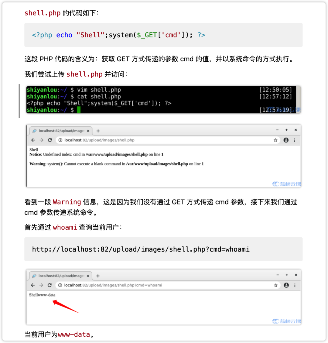 上面的内容来自蓝桥云课《Web 漏洞实战:从入门到精通》课程,课程为大家提供了配套的实验环境和靶机,省去本地搭建环境和因法律问题而无法练习的苦恼。