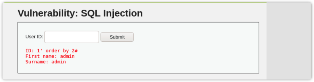 SELECT first_name, last_name FROM users WHERE user_id = '1' order by 1#`;