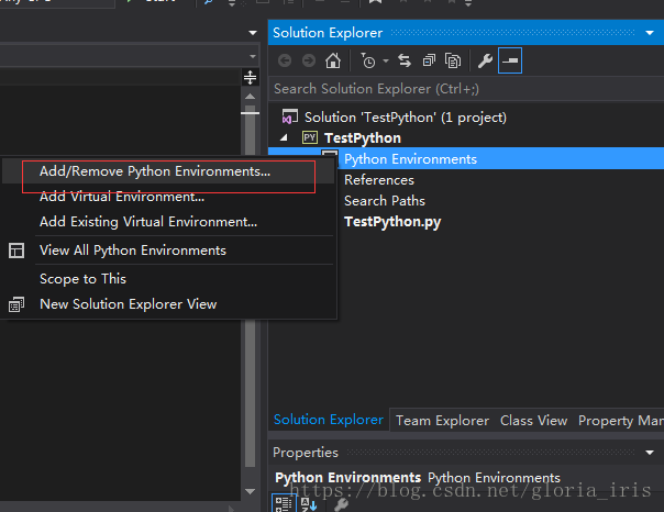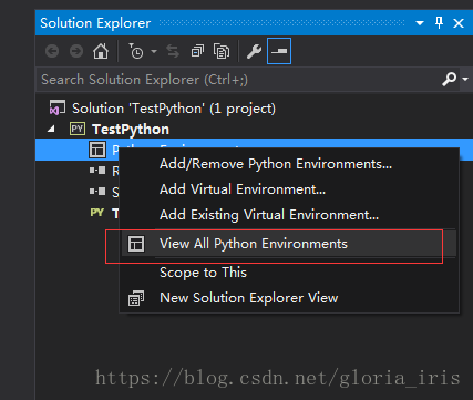 2. 配置python环境,在项目TestPython中右击Python Environments,添加python环境: