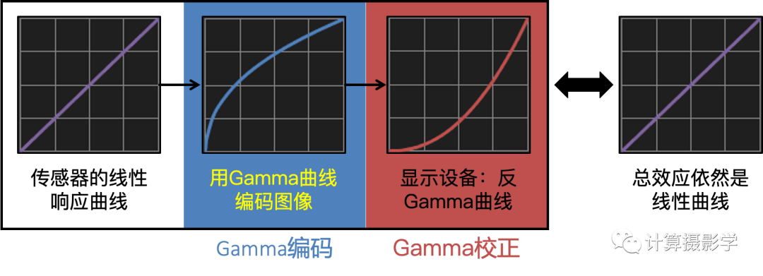 对于显示设备也是一样。无论显示设备的伽马特性如何,它们都需要伽马编码来最大限度地提高信号的视觉质量。它会执行所谓的Gamma校正过程,最终使得我们看到的依然是线性的显示图像。
