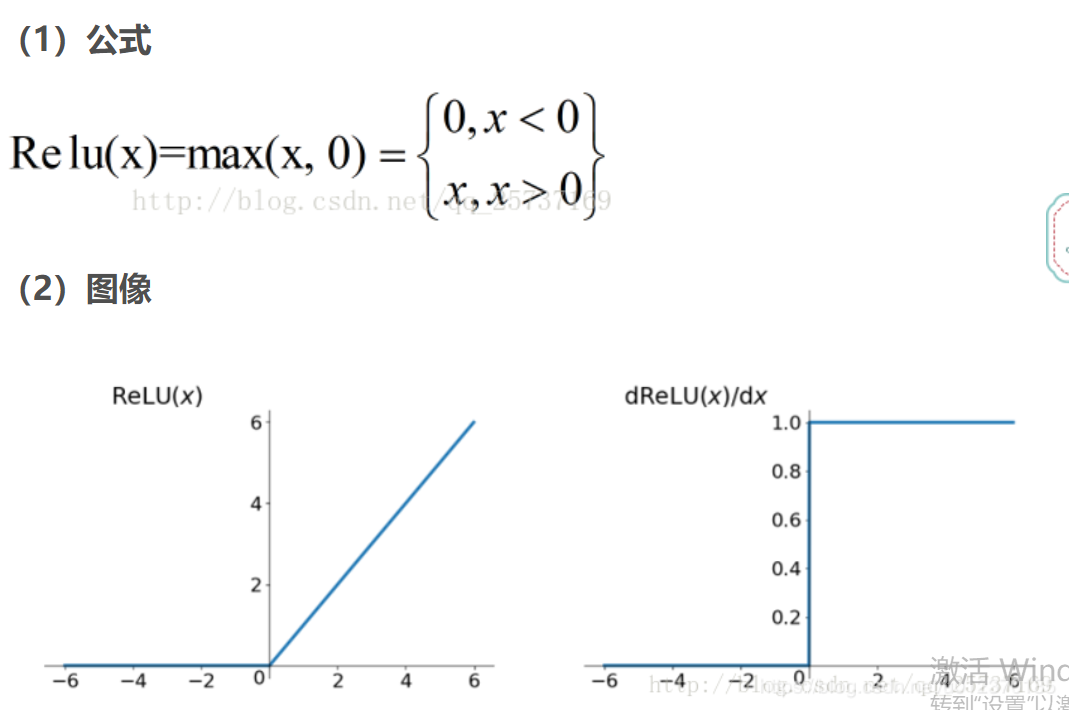 2.饱和区域:sigmoid是双饱和区,ReLU单侧饱和,而且ReLU的单侧饱和可以实现神经网络的稀疏性,有好处。