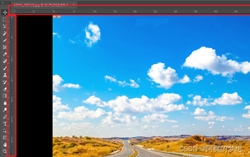 2、按下“Ctrl + R”,使得PS框内出现标尺。