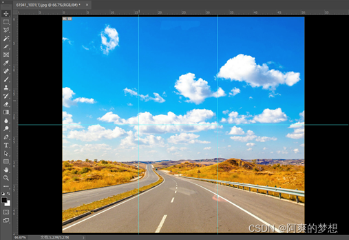 3、从上标尺和左标尺处拉出适当的标尺线,分割好图片。