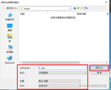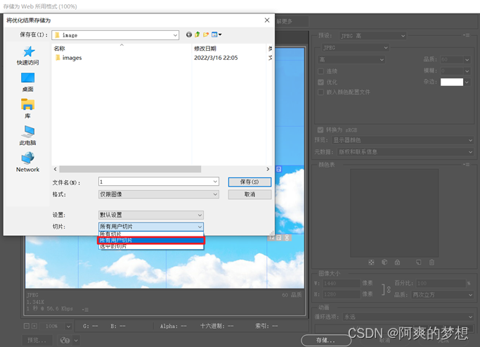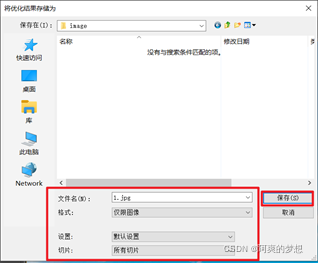 6、选择合适的文件夹、文件名,设置格式(一般是仅限图像)、设置、切片。点击“保存”。