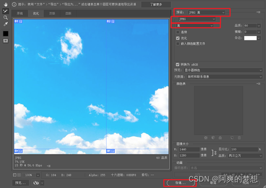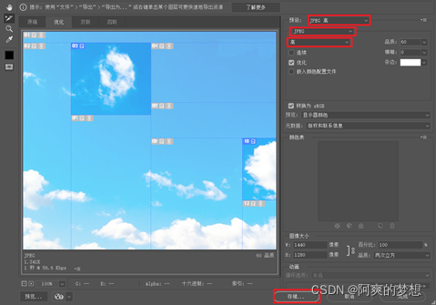 8、选择合适的文件夹、文件名,设置格式(一般是仅限图像)、设置、切片。点击“保存”。
