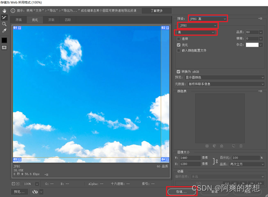 5、图片可以选择为“JPEG高”,设定好相应的格式后,再选择“存储”。