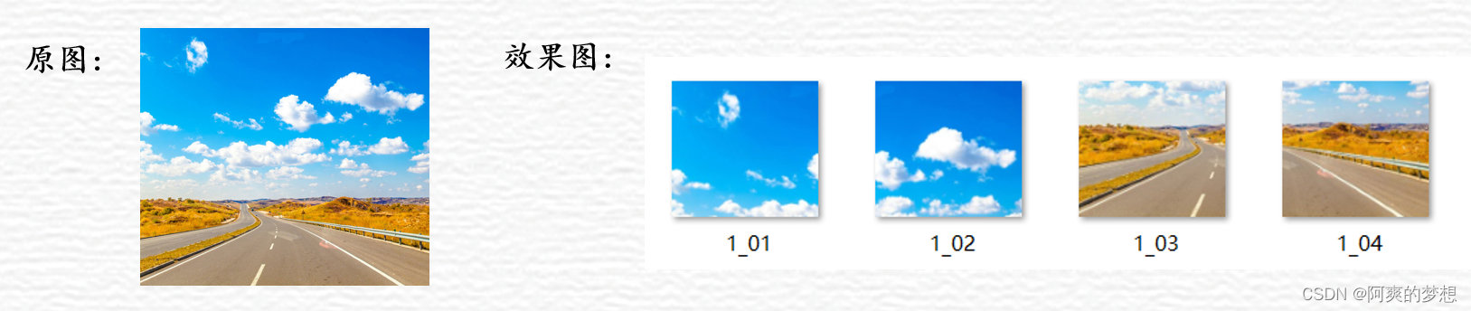 def save_images(image_list):index = 1for image in image_list:image.save('F:/photo/'+str(index) + '.png', 'PNG')index += 1if __name__ == '__main__':file_path = "F:/photo/1.jpg"image = Image.open(file_path)#image.show()image_list = cut_image(image)save_images(image_list)