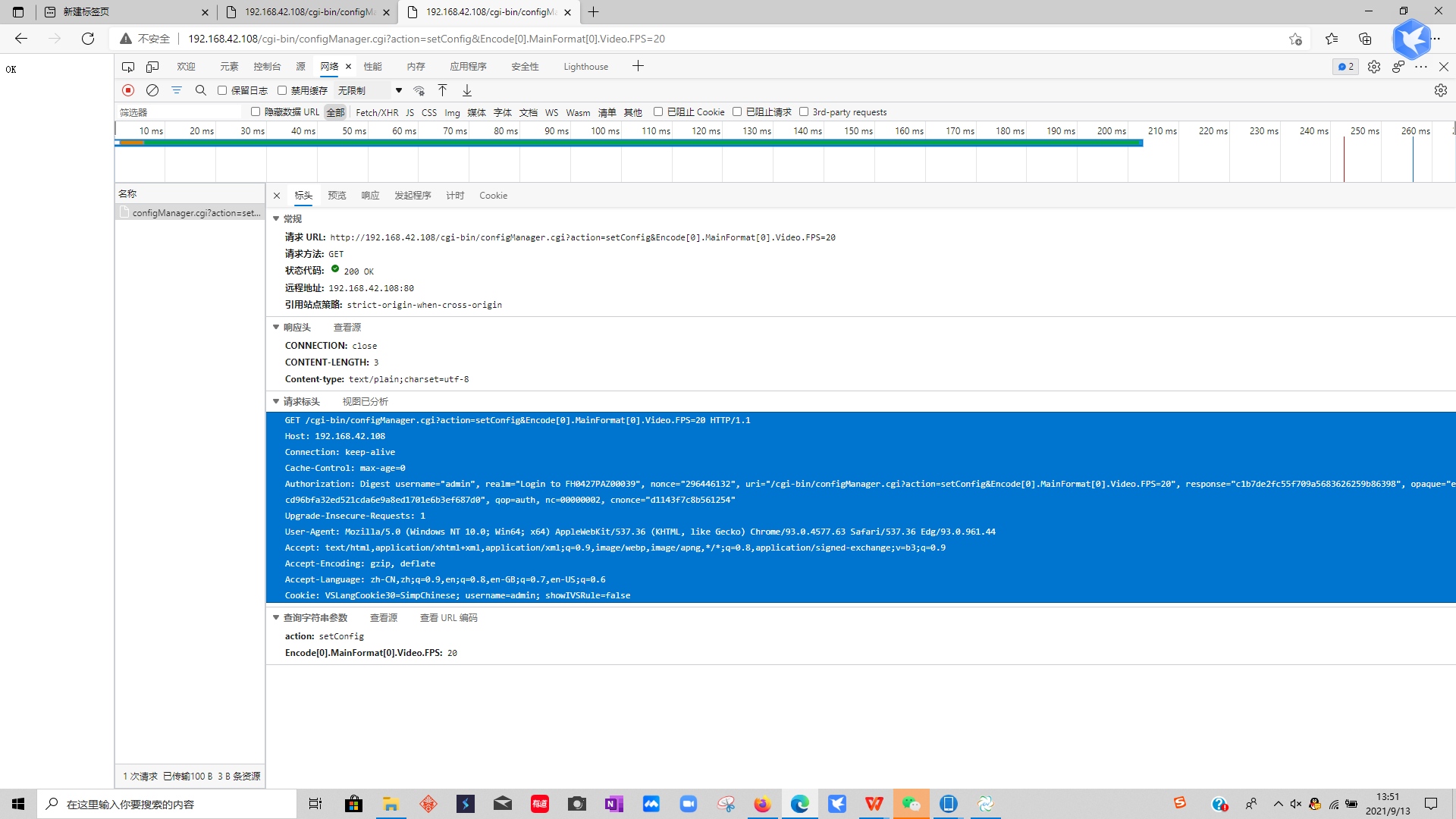 Authorization: Digest username="maxi", realm="Login to FH0427PAZ00039", nonce="3977421983", uri="/cgi-bin/configManager.cgi?action=setConfig&Encode[0].MainFormat[0].Video.FPS=21", response="51a618cc031aeb392dd7e2546235b826", qop=auth, nc=00000001, cnonce="3977421957899296"