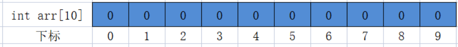 C语言规定,数组的每个元素都有一个下标,下标是从0开始的。数组元素可以通过下标来访问的。int arr[10] = {0} ;