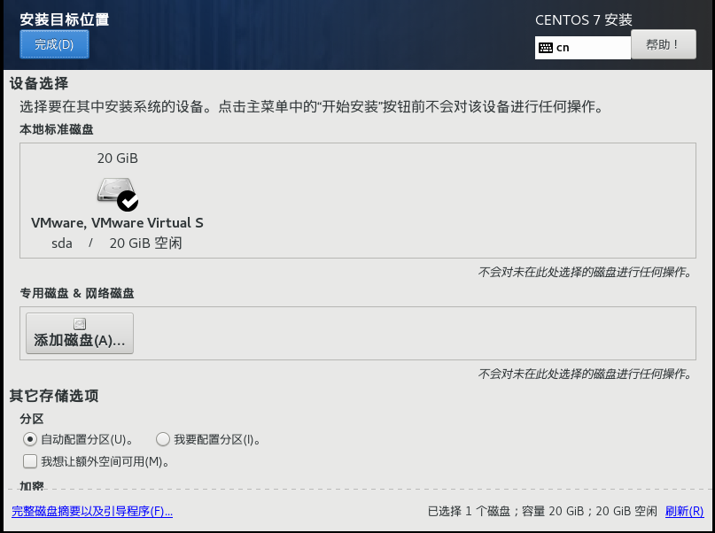 5、磁盘分区(可以选择自定义可也以自己来进行磁盘分区)