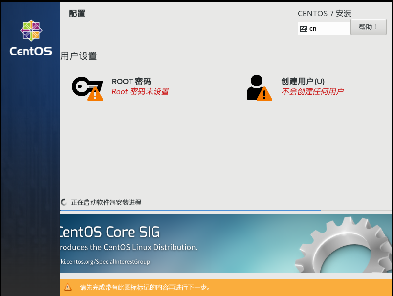 6、点击开始安装,会出现用户设置(设置root密码,用户可以不用创建),等待安装完成。