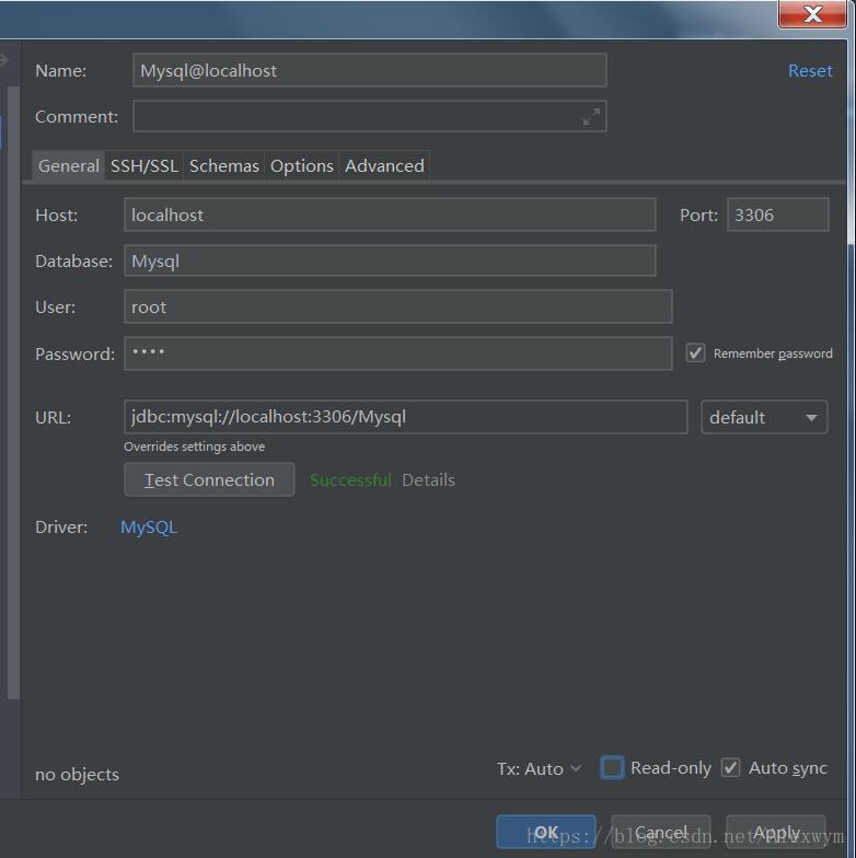 (这里的用户名不是让你新建一个用户,然后设置密码的意思。而是你的mysql数据库已经创建的用户和密码。你需要通过这个用户去连接mysql数据库。其中的url指的是数据库服务器的地址,“/mysql”指的是数据库服务器中某一个具体的数据库。)