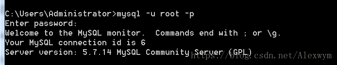 打开cmd,以root权限登录mysql:(这里我的账户是root,密码也是root)