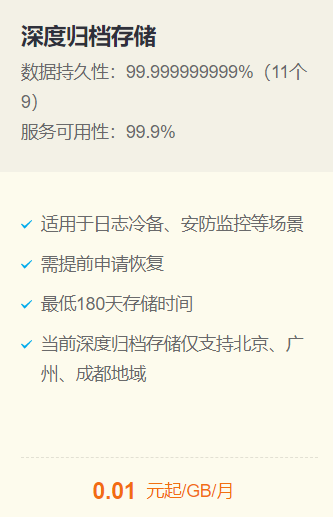前两天,腾讯云官网上居然挂出了一个疯狂的价格,深度归档的存储,1GB只要1分钱每月。