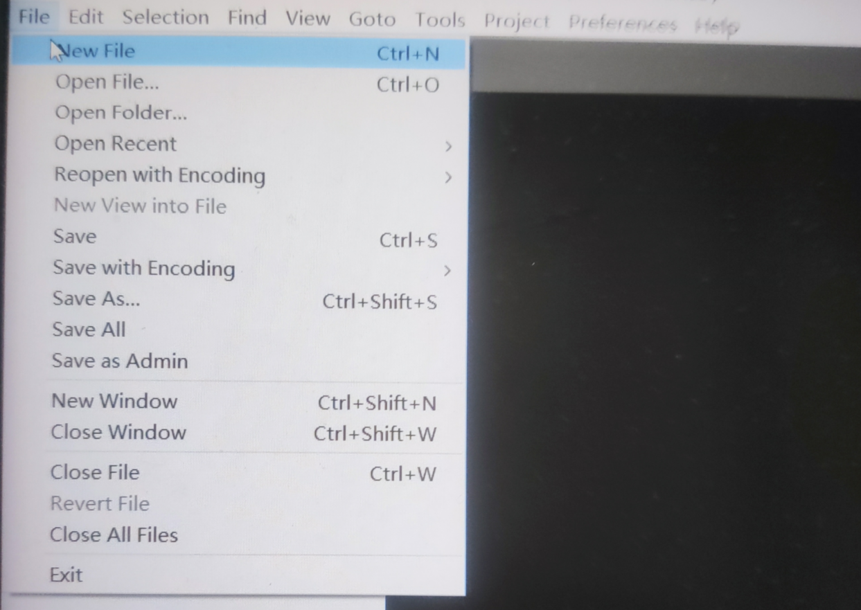 双击进入,选择File下的New File,新建文件